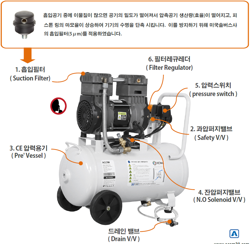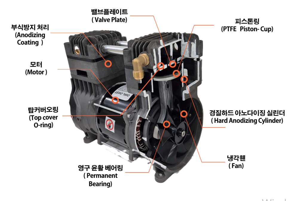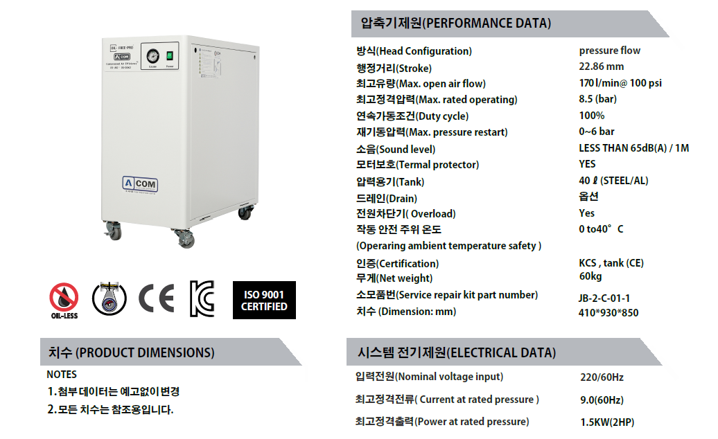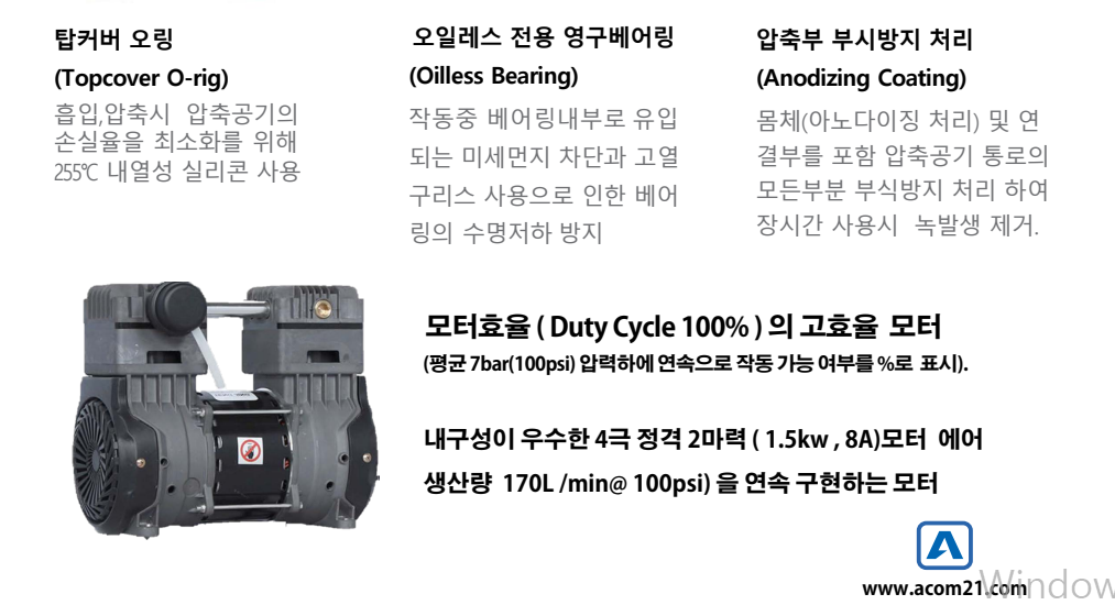 에이콤의 새로운 오일레스 2HP 콤프레셔는 뛰어난 성능과 내구성을 바탕으로 다양한 환경조건 설계와 개선사양